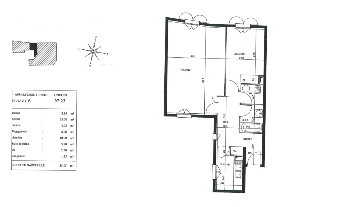 Bel appartement de 56m2 environ offrant d’agréables volumes.