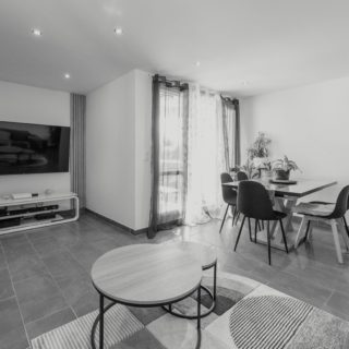 Appartement entièrement refait à neuf, il dispose d’une belle entrée avec rangements, buanderie / cellier, Séjour / salle à manger donnant sur une terrasse, cuisine séparée aménagée et équipée, deux chambres avec rangements, salle d’eau et wc séparé.