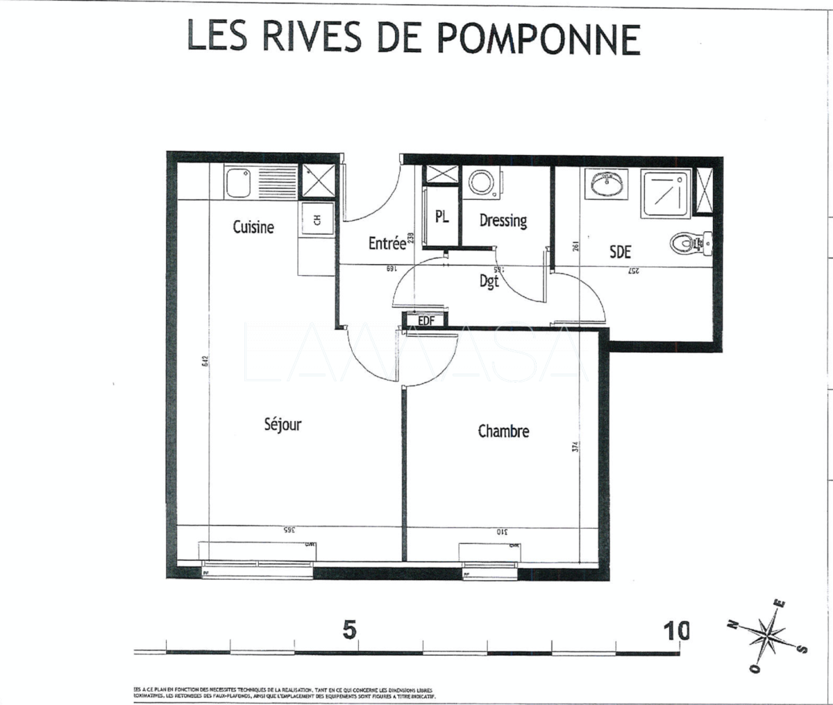 Il se compose d’une entrée avec placard, d’un séjour lumineux avec coin cuisine aménagée et équipée, d’un dégagement, d’un dressing, d’une chambre, ainsi que d’une salle d’eau avec WC.