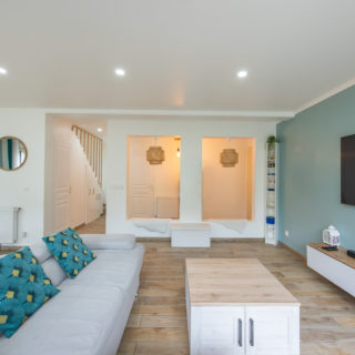 À l’extérieur, vous disposerez d’un stationnement couvert avec un garage et une place de parking. Le terrain est de 280m², ce qui facilite l’entretien.