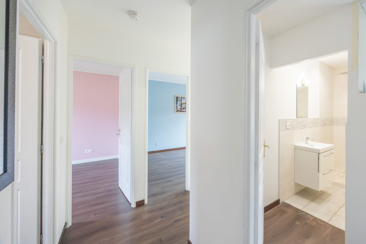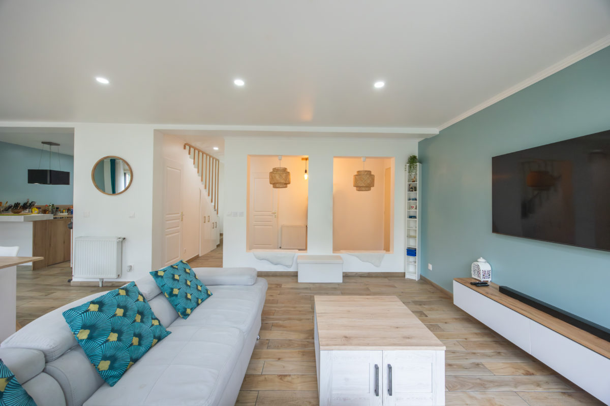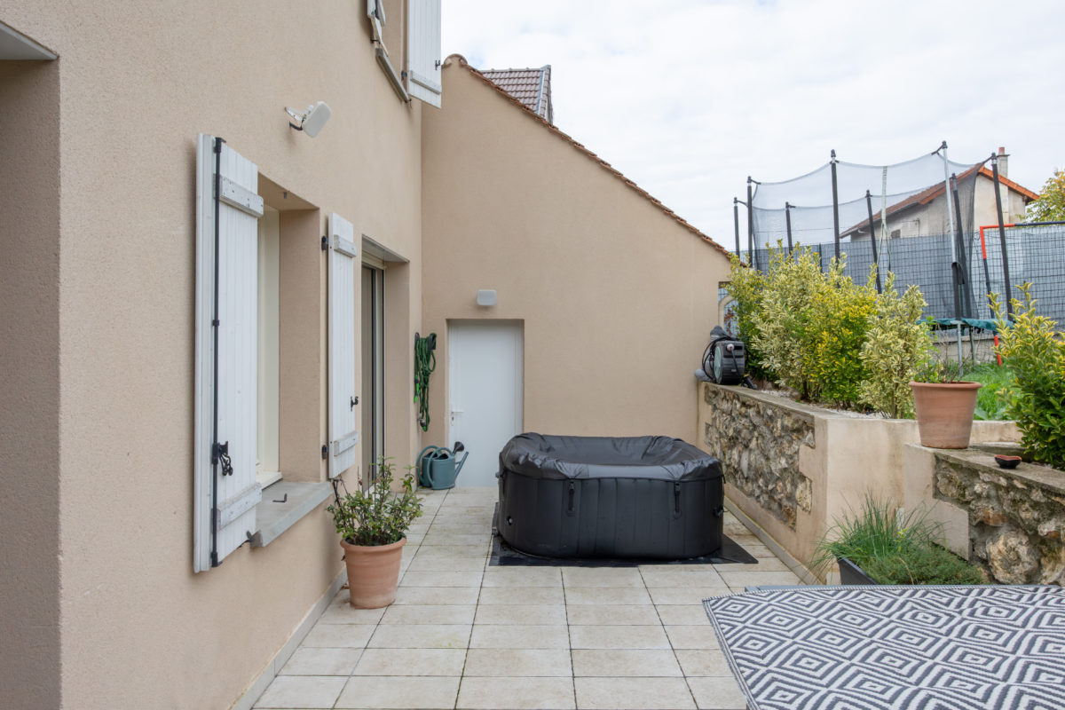 À l’extérieur, vous disposerez d’un stationnement couvert avec un garage et une place de parking. Le terrain est de 280m², ce qui facilite l’entretien.