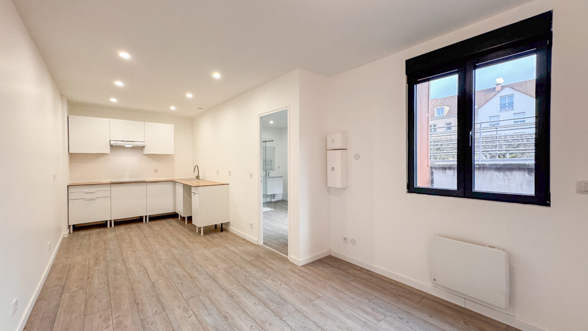 En hyper centre-ville de Lagny-sur-Marne, donnant sur la rue piétonne. Au calme et neuf. Un appartement de deux pièces, composé d’une entrée avec escalier privatif , à l’étage un séjour avec cuisine ouverte aménagée et partiellement équipée, une chambre avec salle d’eau et wc séparé.