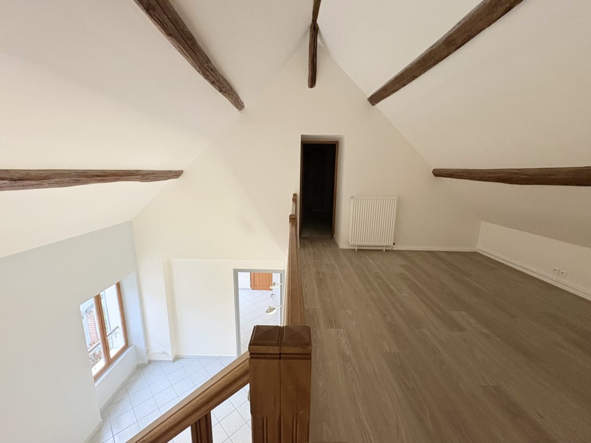 D’une surface au sol de 105,68m2. Au première étage, il se compose de quatre pièces. Une entrée avec un wc indépendant, à la suite une second pièce sur cour, une troisième pièce avec un lave-main indépendant, une dernière pièce avec mezzanine et accès sur un grenier.
