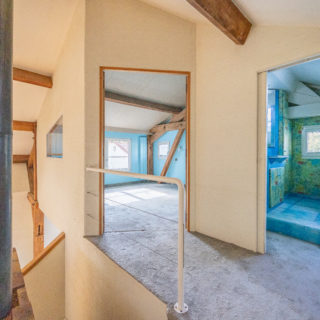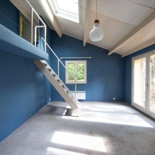 Celle-ci comprend une entrée, une chambre, une salle de bains, un wc, une chambre avec mezzanine et salle d’eau, ainsi qu’à l’étage sous pente, une troisième chambre et un pigeonnier au charme unique.