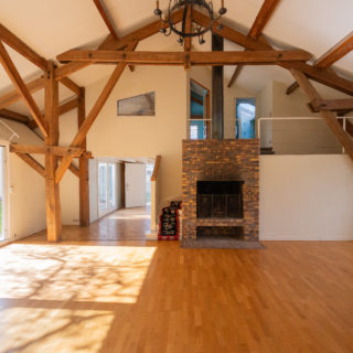 La première maison, construite au début des années 2000, s’ouvre sur une agréable salle à manger attenante à une cuisine avec cellier, puis un vaste séjour plein sud, baigné de lumière grâce à de grandes baies vitrées et agrémenté d’une cheminée. À l’étage : une chambre, une salle de bains et un WC complètent l’ensemble.