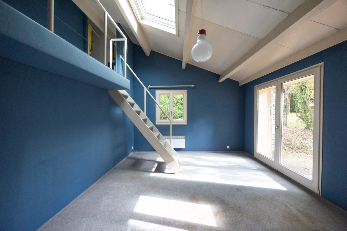 Celle-ci comprend une entrée, une chambre, une salle de bains, un wc, une chambre avec mezzanine et salle d’eau, ainsi qu’à l’étage sous pente, une troisième chambre et un pigeonnier au charme unique.