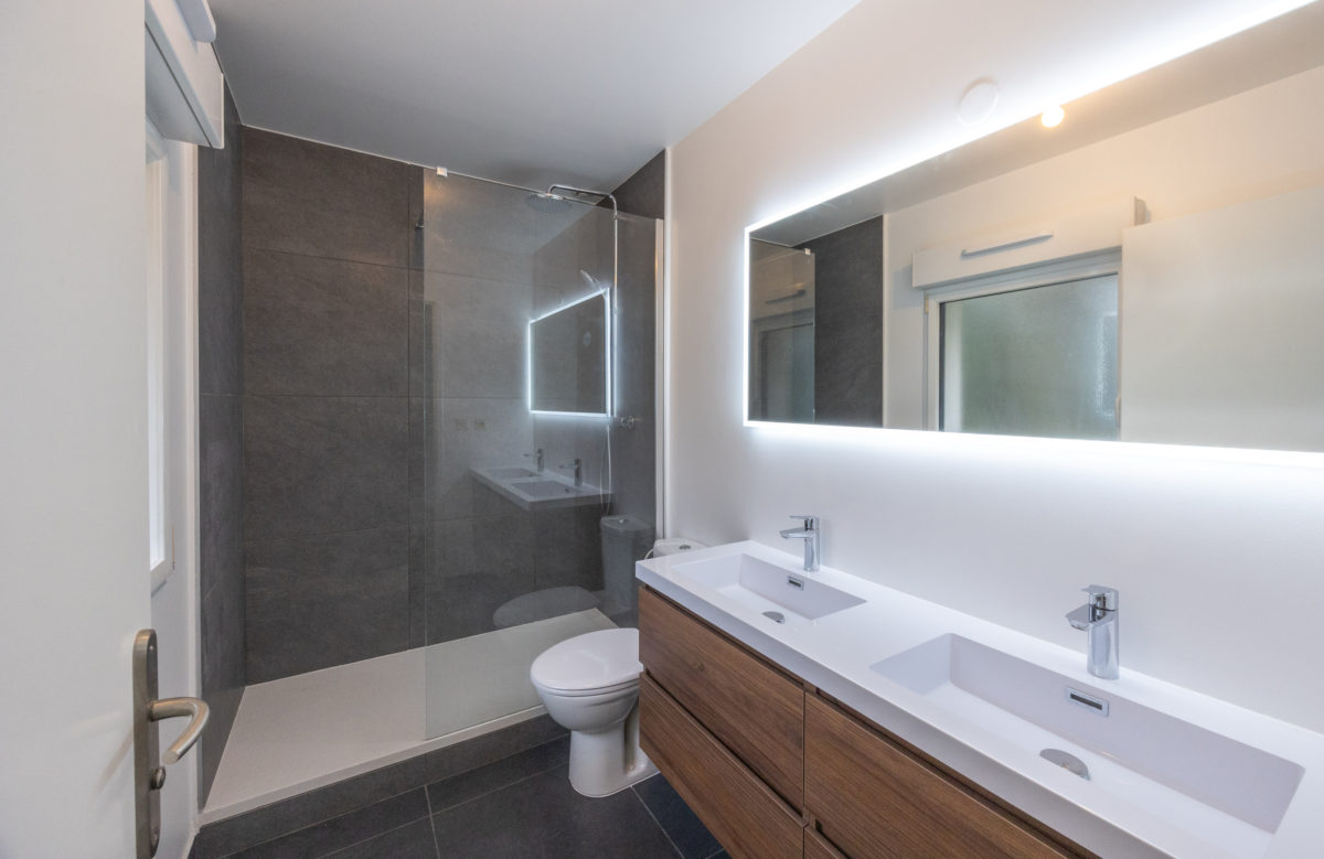 À l’étage, un grand pallier dessert 1 suite parentale avec salle de bain et wc, 4 chambres avec placards intégrés, 2 salles de bains, wc.