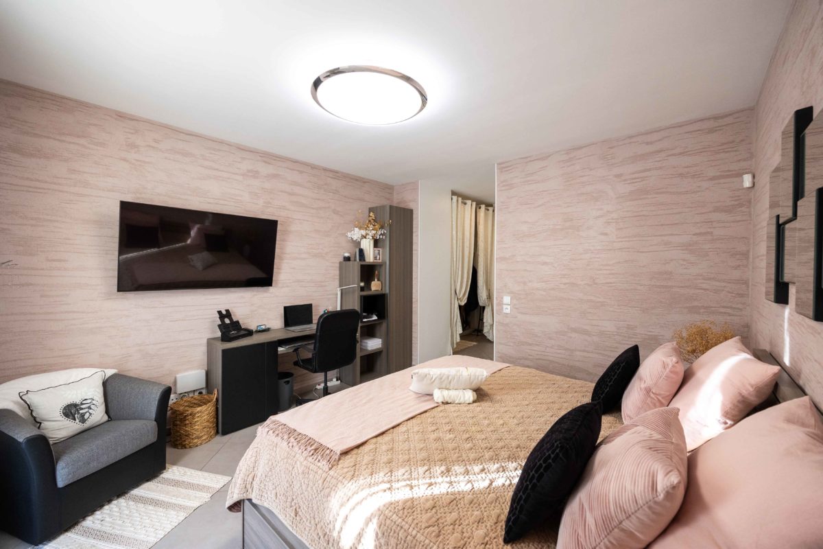 D’une surface d’environ 190 m², elle se compose d’une entrée avec placard, d’un vaste double séjour de 47 m² extrêmement lumineux grâce à son exposition plein sud, équipé d’un poêle à bois, ainsi que d’une cuisine aménagée et entièrement équipée. Une buanderie vient compléter l’espace de vie. La partie nuit comprend trois chambres indépendantes, un WC, ainsi que deux suites parentales, chacune dotée de sa propre salle d’eau, dont l’une bénéficie en plus d’un très beau dressing.