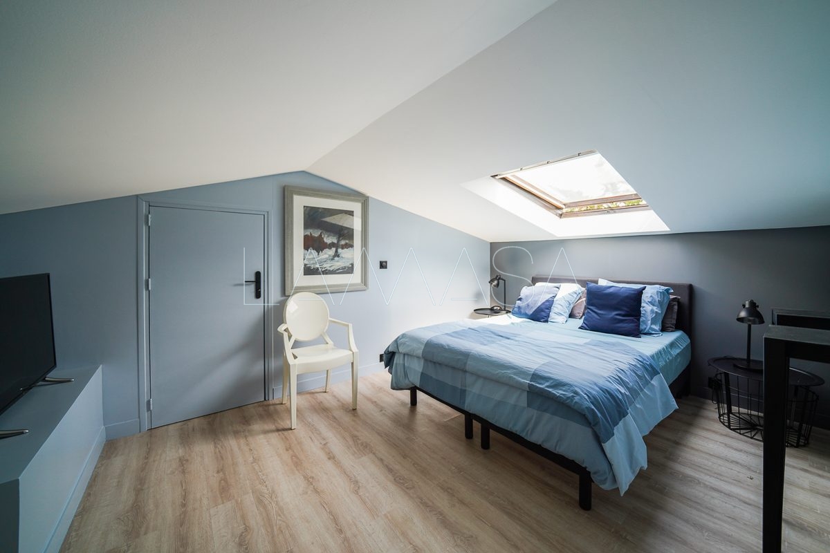 Découvrez cette maison d’architecte rénovée avec soin. Elle dispose d’une entrée avec rangements, d’une cuisine équipée, d’un spacieux séjour de 50 m² donnant sur une terrasse et un jardin intime. Suite parentale en rez-de-chaussée, 2 chambres,