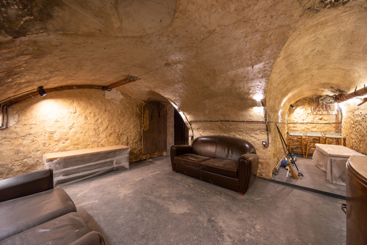 Le sous-sol propose une pièce voûtée, une cave à vin, un espace de rangement et une chaufferie.