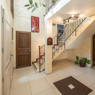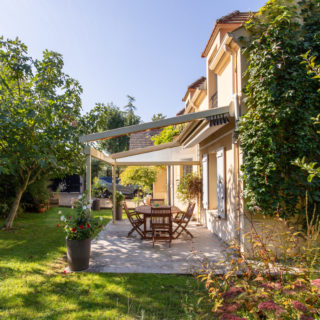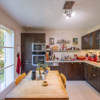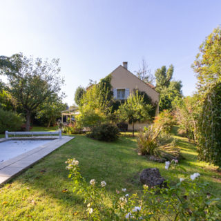 À l’extérieur, le terrain de 1169m2, arboré et sans aucun vis-à-vis, profite de plusieurs expositions et d’une belle intimité, avec une piscine chauffée et une terrasse spacieuse.
