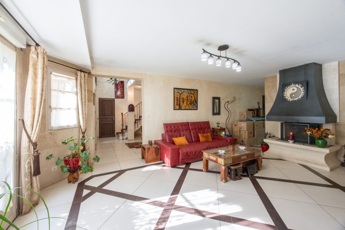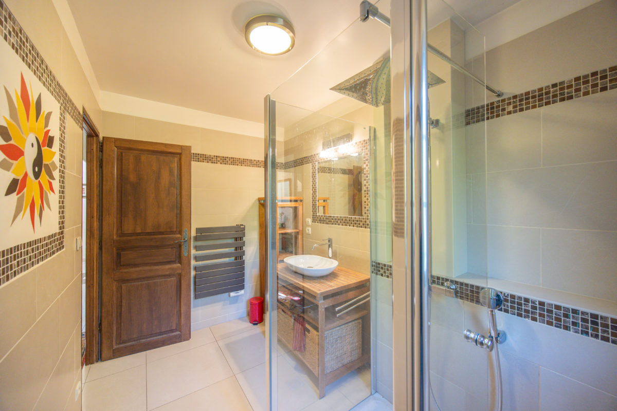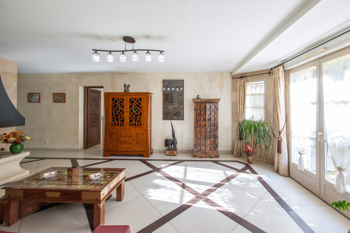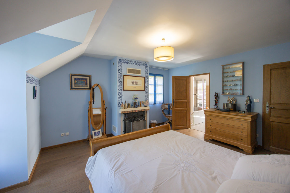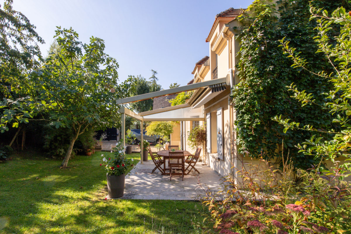 À l’extérieur, le terrain de 1169m2, arboré et sans aucun vis-à-vis, profite de plusieurs expositions et d’une belle intimité, avec une piscine chauffée et une terrasse spacieuse.