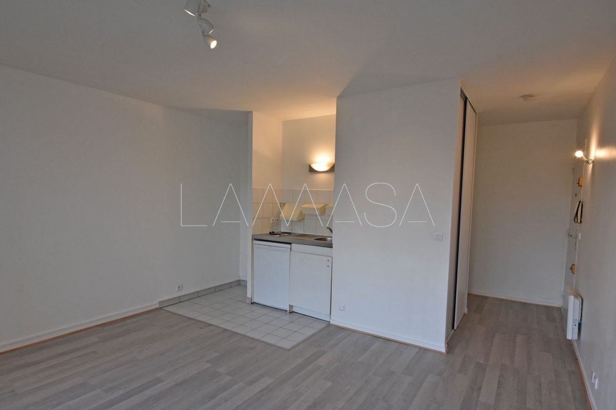 Dans une résidence calme à Lagny-sur-Marne. Un studio au premier étage comprenant une entrée avec placard, une pièce de vie principale avec coin cuisine équipée par plaque et frigo, une salle de bain avec wc et un grand balcon.
